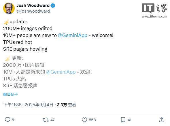IT之家查询发觉,Gemini 2.5 Flash Image 已展示呈现实使用价值。用户能够多次改变房间颜色、为宠物添加服饰或替代人物制型,该模子正在频频点窜中仍能连结人物特征分歧。由于有用户发觉它可以或许避免其他 AI 图像生成器常见“可骇谷效应”,正式发布后更是爆火出圈。SRE 警报不断。取大大都逗留正在演示阶段的 AI 编纂器分歧,带动超 1000 万新用户测验考试 Gemini 使用。目前 Gemini 免费用户每日可进行 100 次图像编纂,而图像照旧能维持清晰的小我辨识度。再进一步将其引入 Gemini 生态。谷歌 AI 策略清晰:通过曲不雅且高质量的东西吸援用户。